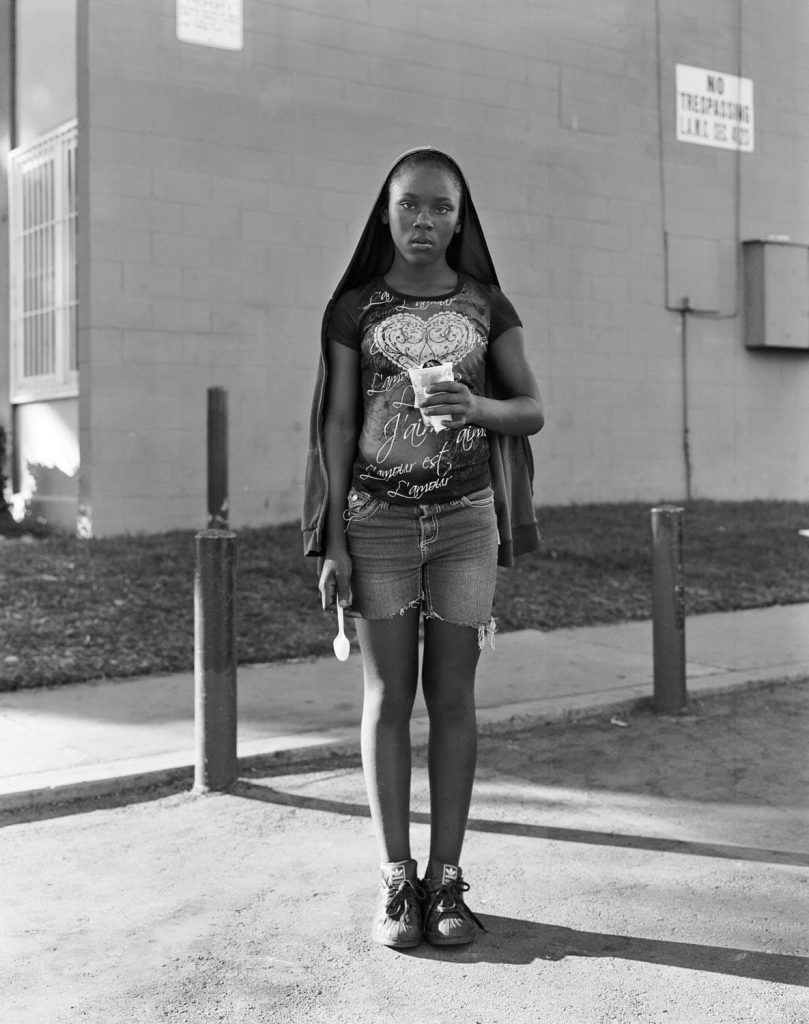Irena Okoelskaja: “Wat hebben Tupac, Aaliyah, Prince en Whitney Houston met elkaar gemeen? Oké, het zijn alle vier muzikale grootheden die niet meer onder ons zijn, maar dat is niet waar ik op doel. Allen hebben ze voor de lens van de Nederlandse fotograaf Dana Lixenberg (1964) gestaan, die hen in de jaren 90 analoog fotografeerde. Anno 2021 is er weinig veranderd aan haar kunstpraktijk. Dana fotografeert namelijk nog steeds met een zogenaamde ‘veldcamera’: een model uitgevonden in de negentiende eeuw. Lixenberg richt haar camera echter niet enkel op celebrities; ze is ook beroemd om haar serie Imperial Courts, waarin ze jongeren uit de gelijknamige (sociale huisvestings)buurt in Los Angeles heeft vastgelegd. De wijk stond bekend als getto en er was veel geweld, maar Dana’s foto’s laten een heel andere kant van de buurt zien. Ze portretteerde de bewoners in hun alledaagse bezigheden: spelend, wachtend, liefhebbend. Niet de getto, maar de mens voorop. Het werd uiteindelijk een project van 22 jaar dat Lixenberg definitief op de kaart zette.”